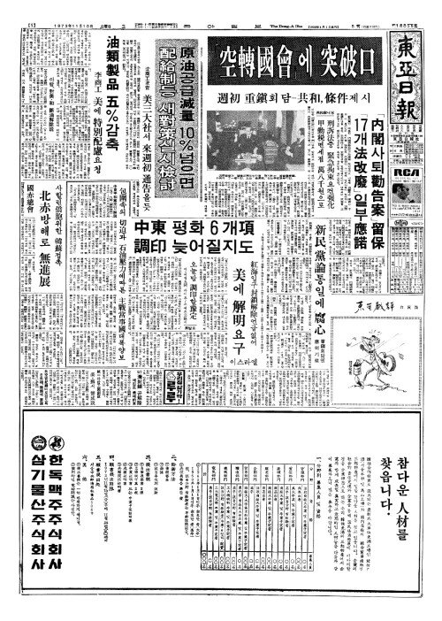 - 아랍、對美(대미)·和(화) 斷油解除説(단유해제설)