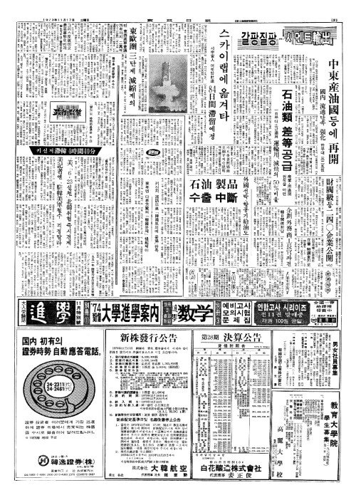 - 美對(미대)아랍經濟(경제)봉쇄고려 石油生産(석유생산) 감축에 보복