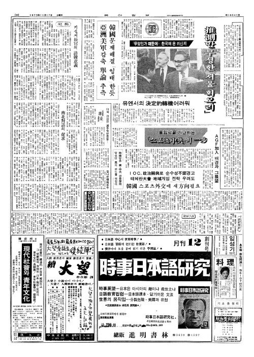 - 키신저 巡訪(순방)으로「韓國(한국)토의에 妥協(타협)」관측 來年(내년)엔 다른方案(방안)의「韓國(한국)문제」提起(제기)돼야