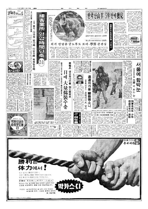 - 한국산山羊(산양) 5年(년)만에發見(발견)