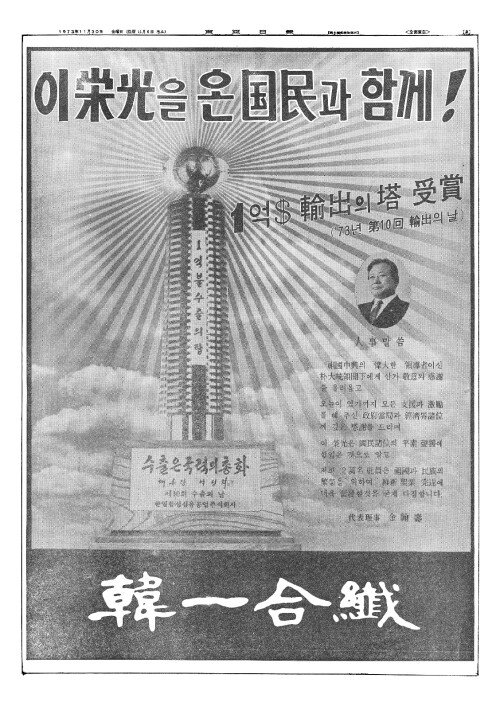 - 인터뷰 輸出高(수출고) 一億(일억)달러올린 한일합섬金翰壽(김한수)씨"무모한 덤핑 삼갈때"