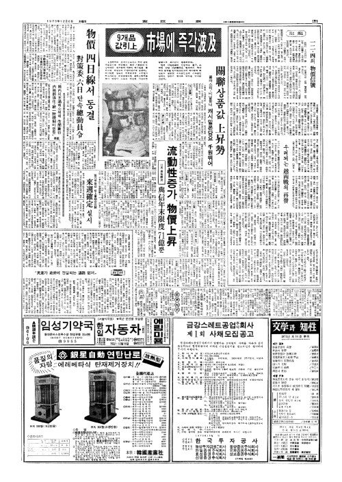 - 9개品(품)값引上(인상) 市場(시장)에 즉각波及(파급)