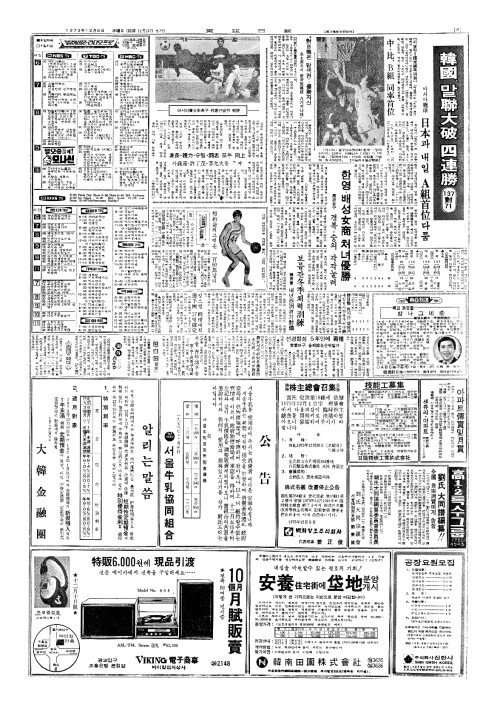 - 아시아籠球(롱구) 韓國(한국)、말聯大破(련대파) 四連勝(사련승) 137對(대)71