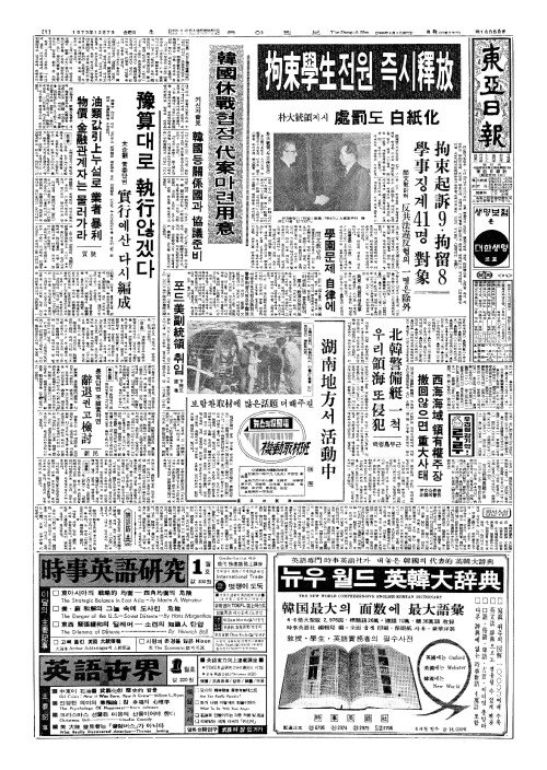 - 서울大生五(대생오)명公訴(공소)취소 警察拘留八(경찰구류팔)명모두釋放(석방)