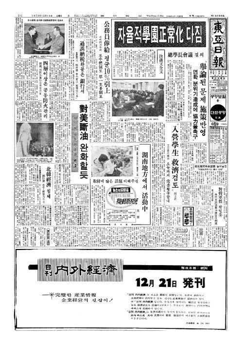 - 油類(유류)파동 아시아平和(평화)위협 美(미)필라델피아 인콰이어러紙(지) 報道(보도)