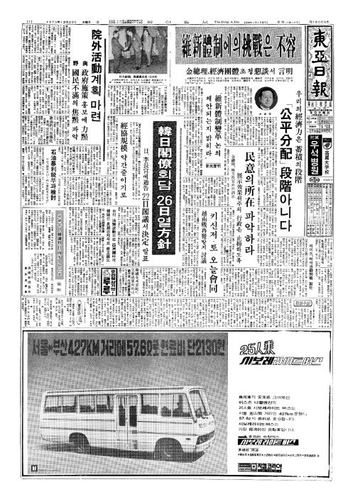 - 金總理(김총리),經濟團體(경제단체)초청懇談(간담)서 言明(언명) 維新體制(유신체제)에의挑戰(도전)은 不容(부용)