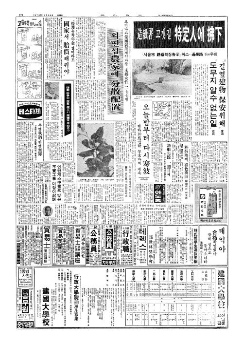 - 「서울市(시) 路幅(로폭)확장告示(고시)」취소…通學路(통학로) 1㎞우회 「造紙署(조지서)」고갯길 特定人(특정인)에 拂下(불하)