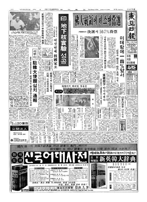 - 世界戰略均衡(세계전략균형)에 큰衝擊(충격) 蘇(소)에 政治的利得(정치적이득)안겨줘 印核實驗(인핵실험) 各國反應(각국반응)