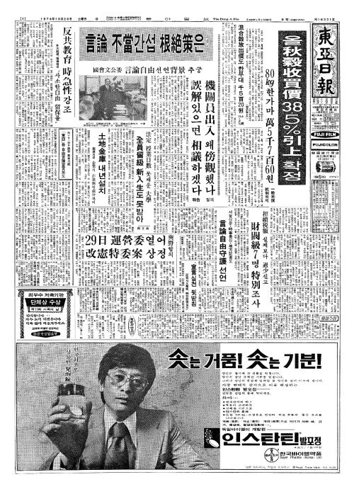 - NYT·WP紙(지)등 美有力紙(미유역지) 「東亞(동아)」등 自由言論宣言(자유언논선언)보도