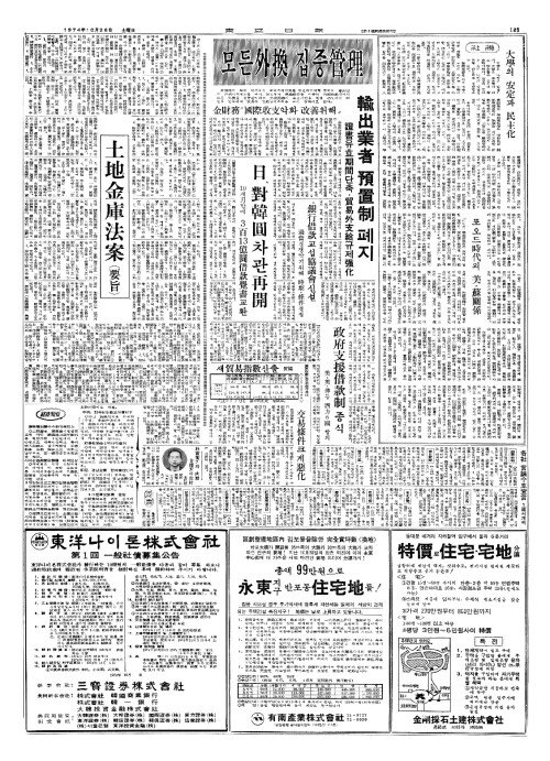 - 閣議(각의)의결 土地金庫(토지김고) 내년설치