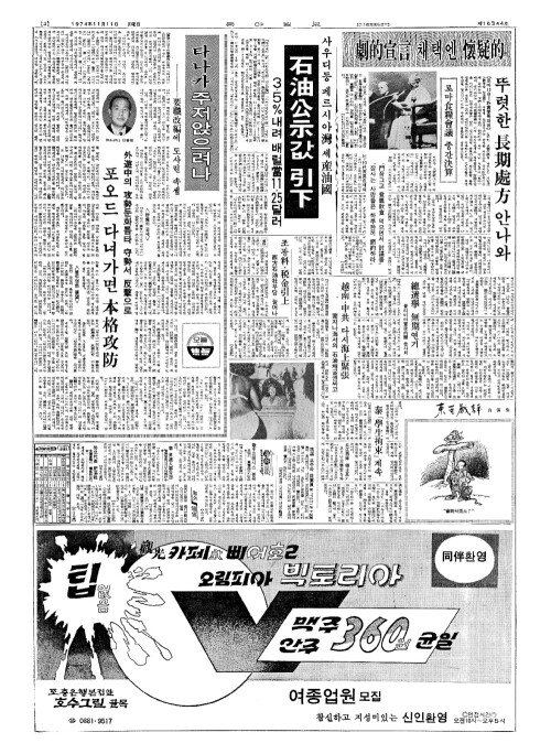 - 키신저報告(보고)후 지적 포오드 巡訪計劃(순방계획) 建設的(건설적)으로 기대