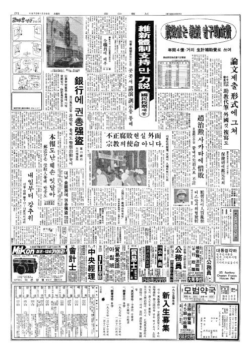 - 國民投票(국민투표)계몽 "維新體制支持(유신체제지지)"만 力説(력설)