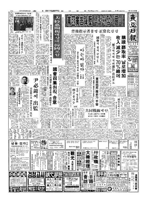 - 東亞廣告彈壓(동아광고탄압) 석달째접어들어