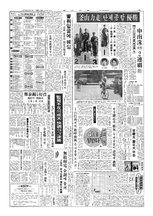 - 本社(본사)주최 4·19기념 全国一周(전국일주)사이클 釜山力走(부산력주)…단체종합 優勝(우승)