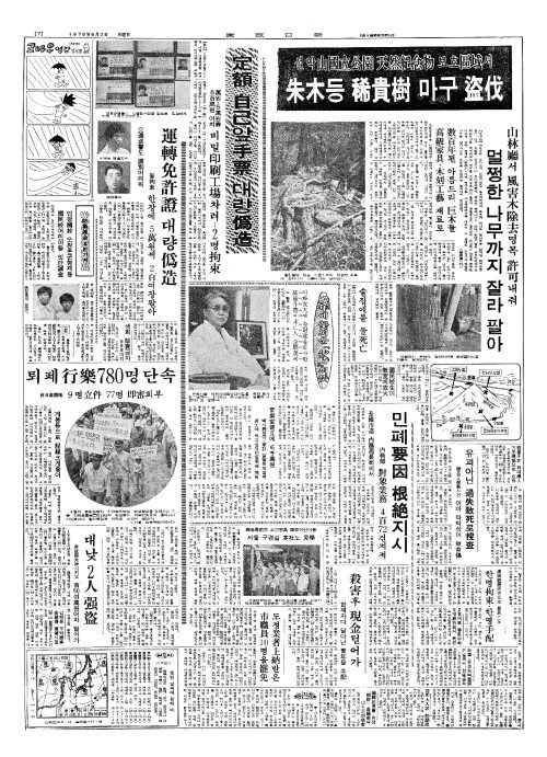 - 설악山國立公園(산국립공원) 天然紀念物(천연기념물) 보호區域(구역)서 朱木(주목)등 稀貴樹(희귀수) 마구 盜伐(도벌)
