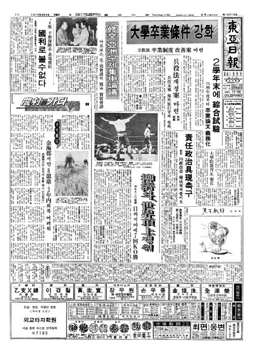 - 文教部(문교부) 大學卒業條件(대학졸업조건) 강화 卒業制度(졸업제탁) 改善案(개선안) 마련