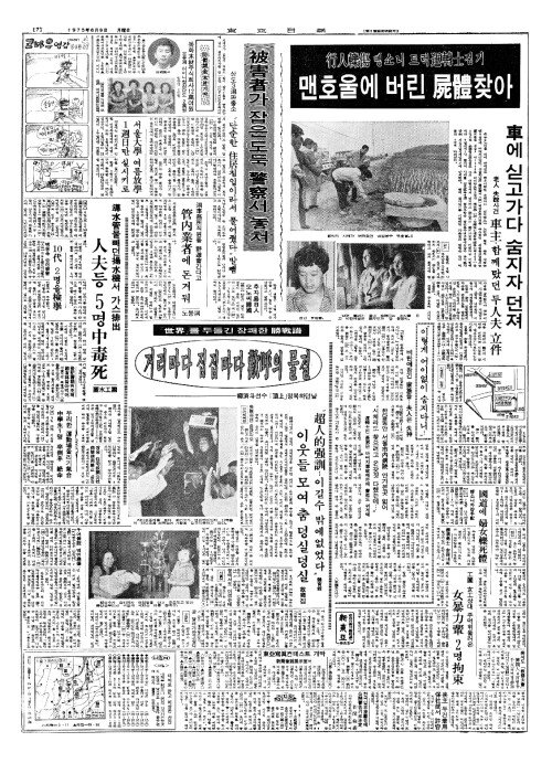 - 麗水工團(려수공단) 導水管(도수관)물빼던揚水機(양수기)서 가스排出(배출) 人夫(인부)등 5명中毒死(중독사)