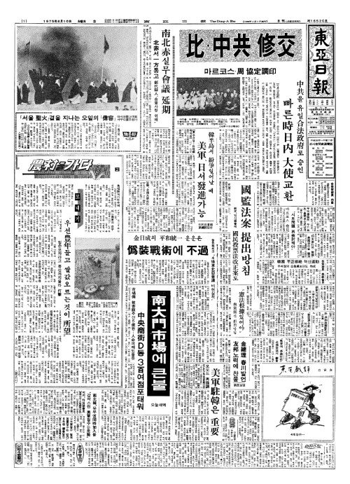 - 「서울 聖火(성화)」곁을 지나는 오일의「偉容(위용)」아시아陸上(륙상)대회 사우디選手(선수)참가
