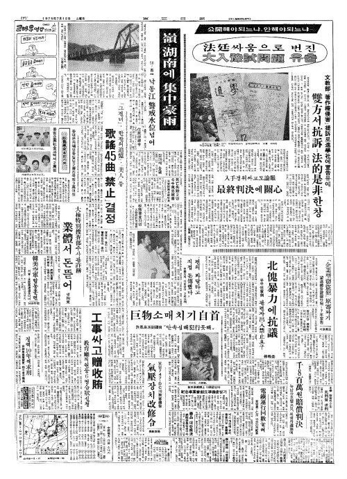 - 「그건너」·「한잔의追憶(추억)」·「美人(미인)」등 歌謠(가요)45曲(곡)「禁止(금지)」결정