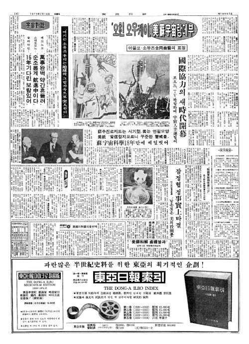 - 제16551호 "오친 오우케이" 美蘇宇宙(미소우주)랑데부 아폴로·소유즈合同曲藝(합동곡예)의 표정