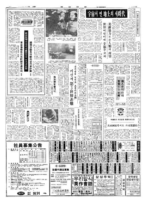 - 宇宙(우주)서 연 地上(지상)의 새時代(시대) 아폴로·소유즈宇宙人會見内容(우주인회견내용)