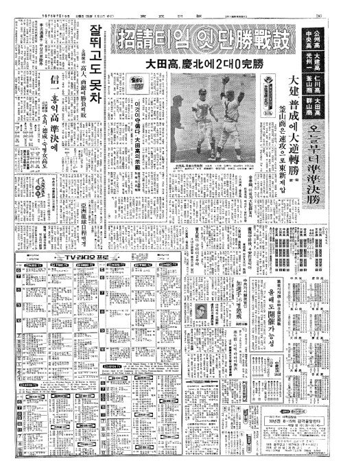 - 제29회 黄金(황김)사자旗(기)쟁탈 地區别招請(지구별초청)고교야구 ●주최● 本社(본사)·野協(야협) 招請(초청)티임 잇단勝戰鼓(승전고) 大田高(대전고),慶北(경북)에2대0完勝(완승)