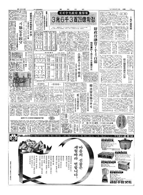 - 維新沮害議題(유신저해의제)배격 豫算案期日內(예산안기일내)통과 共和議總(공화의총)재확인