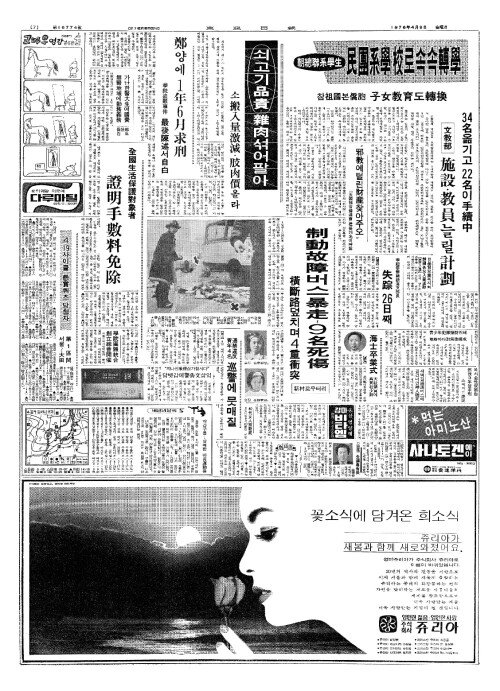 - 新村(신촌)로우터리 制動故障(제동고장)버스暴走(폭주)…9名死傷(명사상)