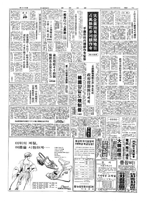 - 農水産部(농수산부) 大企業所有空閑地(대기업소유공한지)등 4萬餘町步(만여정보)에耕作令(경작령)