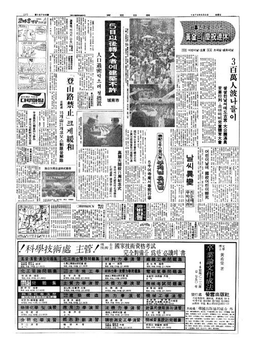 - 어린이날慶祝(경축)대잔치延期(연기) 궂은날씨로…開催日時追後發表(개최일시추후발표)