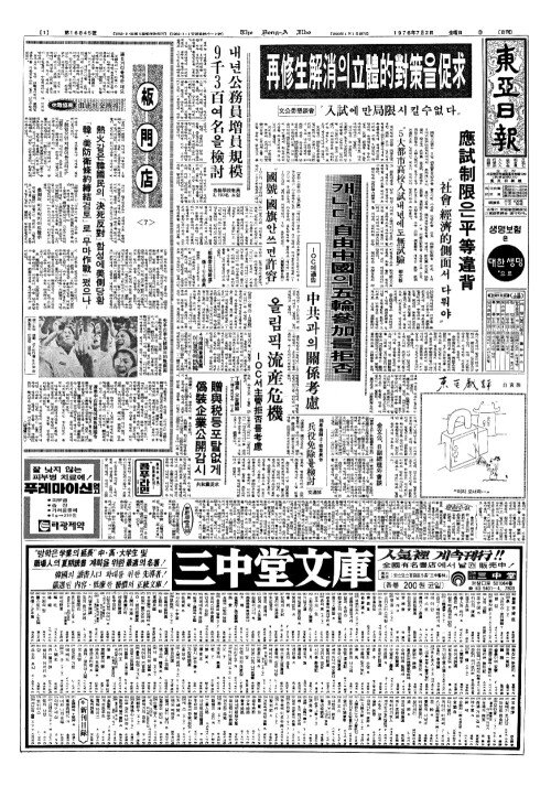 - 캐나다、自由中國(자유중국)의五輪參加(오륜참가)를拒否(거부)
