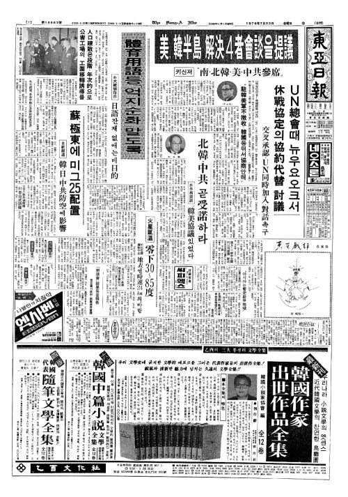 - 키신저 美(미),「韓半島(한반도)」解決(해결)4者會談(자회담)을提議(제의)