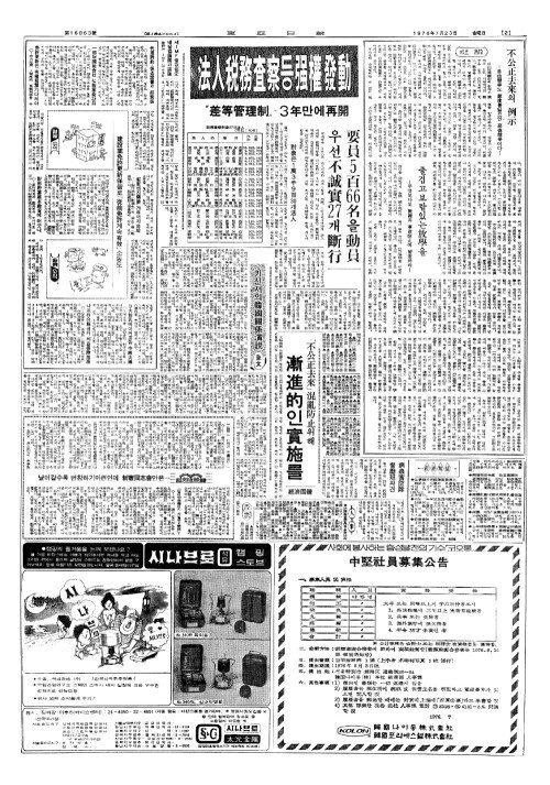 - 法人税務査察(법인세무사찰)등强權(강권) 發動(발동)
