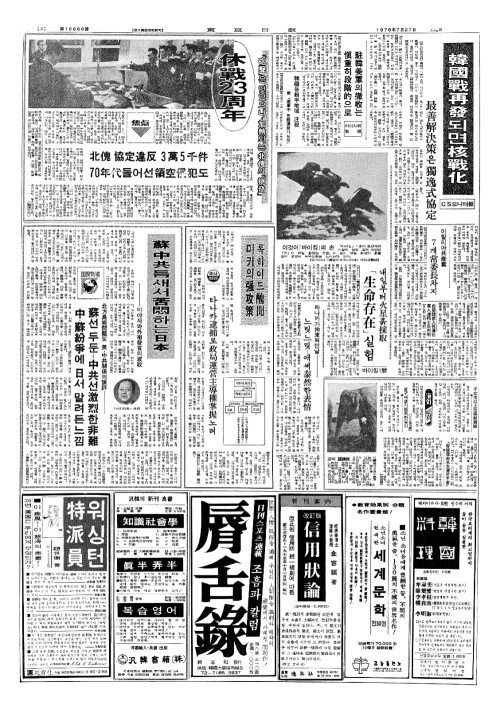 - 休戰(휴전)23周年(주년) 「砲聲(포성)」은 멎었으나…加熱(가열)되는北傀(북괴)의「挑發(도발)」
