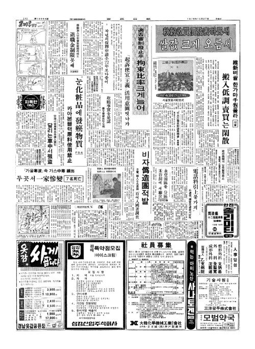 - 秋穀收買價發表(추곡수매가발표)하룻새 쌀값 크게 오름세