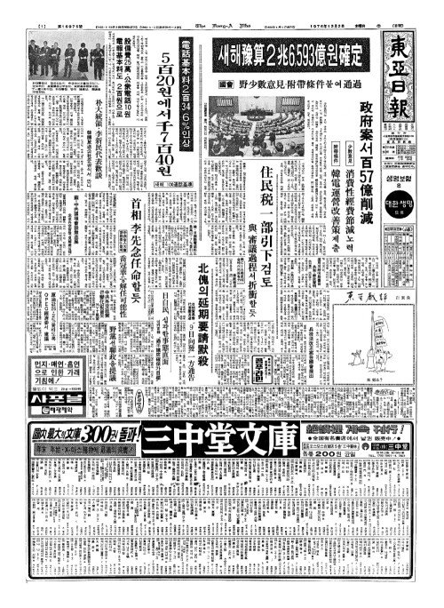 - 國會(국회) 새해豫算(예산) 2兆(조)6,593億(억)원確定(확정)