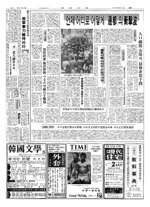 - 새首都(수도)가안은問題㸃(문제점) 投資財源(투자재원)·施設移動(시설이동)·서울의空疎化(공소화)등難題(난제)