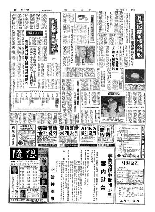- 日(일)「2百海里(백해이)」法案(법안) 앞당겨提出(제출)키로