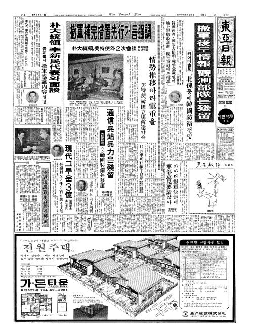 - 通信(통신)·兵站兵力(병참병역)은殘留(잔유) 美特使離韓(미특사리한) 2師團裝備(사단장비)는移讓(이양) 離韓聲明(리한성명) 空港會見(공항회현)