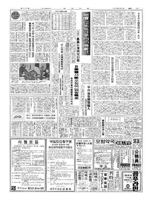 - 12개都市(도시) 地價(지가)、12年(년)동안平均(평균)25倍(배)올라