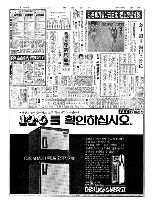 - 제6회전국소년체육대회 <3일> 5連覇(련패)기틀다진忠北陸上(충북륙상)종합優勝(우승)