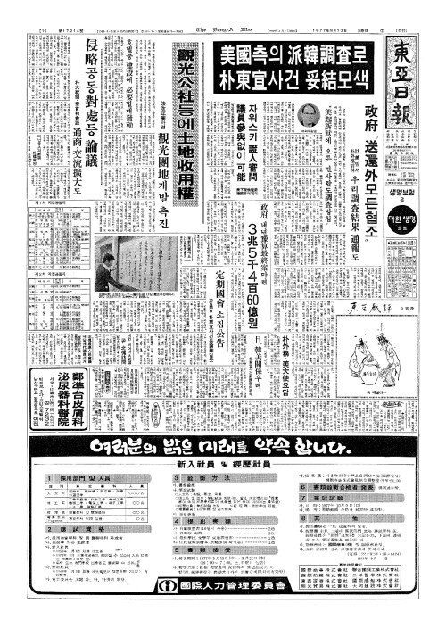 - 朴東宣(박동선)사건兩國動向(양국동향)분석 日(일)、韓美關係(한미관계)우려