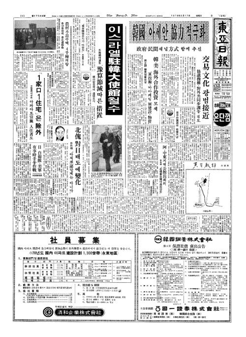 - 外務部(외무부)에通告(통고) 이스라엘駐韓大使館(주한대사관)철수