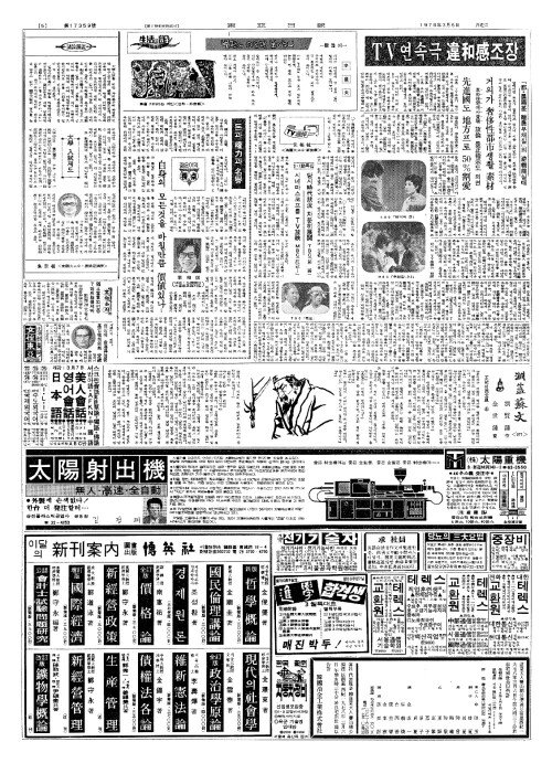 - 3.1節(절)특집 당시時代狀況(시대장황) 차분히展開(전개) TBC「族譜(족보)」시네마스코프를 TV放映(방영) MBC「紅衣(홍의)…」