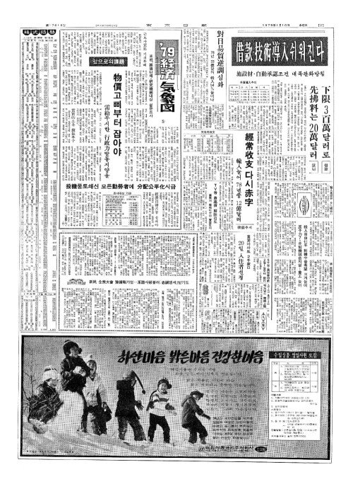 - 對日易貿逆調(대일이무역조)심화 78년 33億(억)달러 輸入(수입)54%늘어나