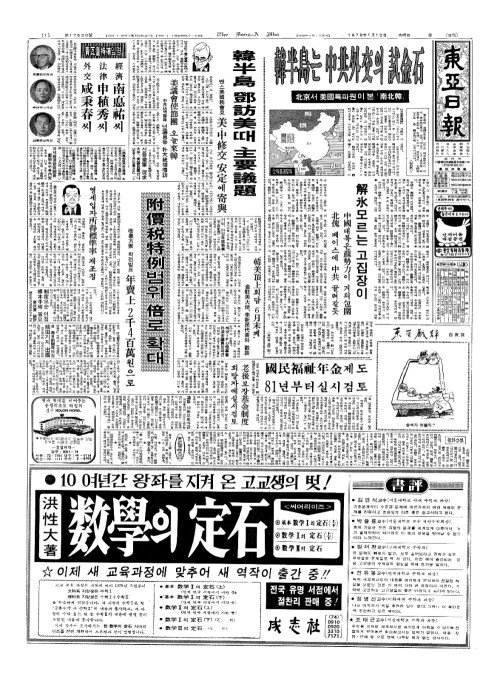 - 밴스美國務會見(미국무회현) 美(미)·中修交(중수교) 安定(안정)에寄與(기여) 韓半島(한반도) 鄧訪美(등방미)때 主要議題(주요의제)