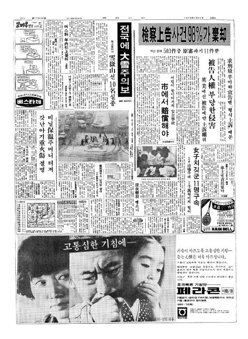 - 嶺南(령남)·濟洲(제주)제외 전국에 大雪(대설)주의보