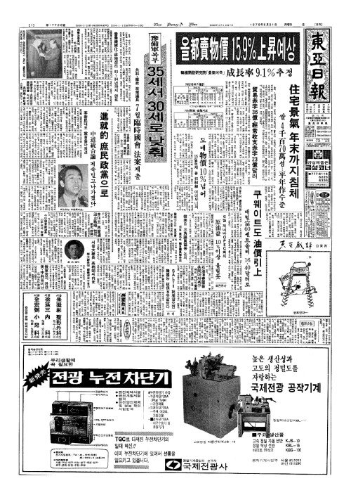 - 韓國開發研究院(한국개발연구원)「景氣(경기)예측」 成長率(성장율)9.1%추정 올都賣物價(도매물가) 15.9% 上昇(상승)예상