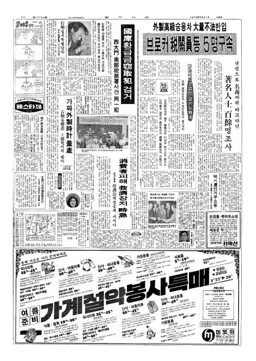 - 外製高級(외제고급)승용차 大量不法(대량부법)반입 브로커·税關員(세관원)등 5명구속