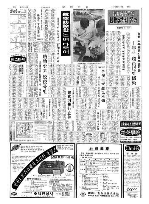 - 獣醫師(수의사)팀 조사보고 昌慶苑(창경원) 동물病(병) 觀覽客(관남객)한테 옮겨